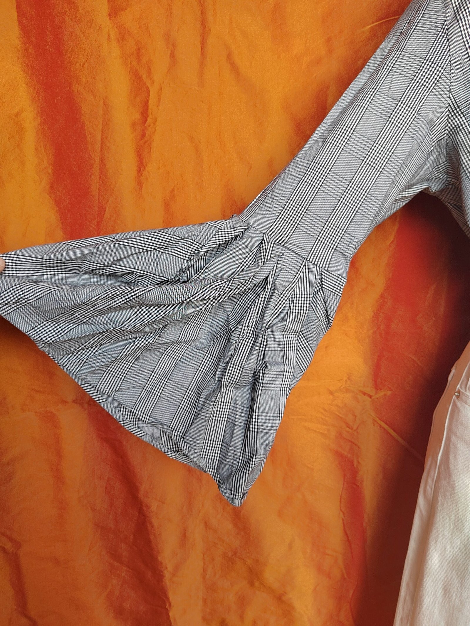 • Manches ajustées jusqu'au coude, puis évasées.