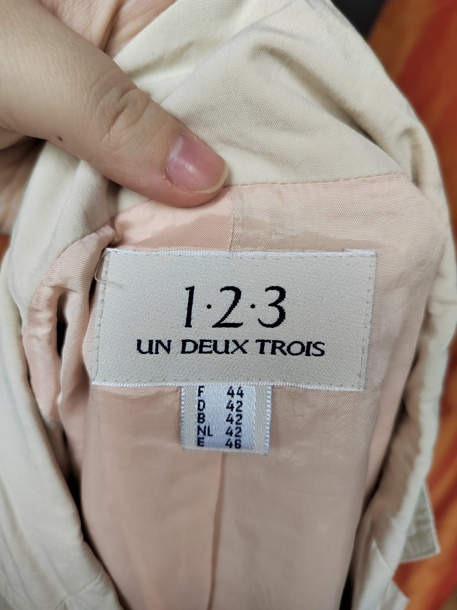 🏷️ Marque Un, Deux, Trois, taille indiquée 44, taille petit, correspond plus à un 42.