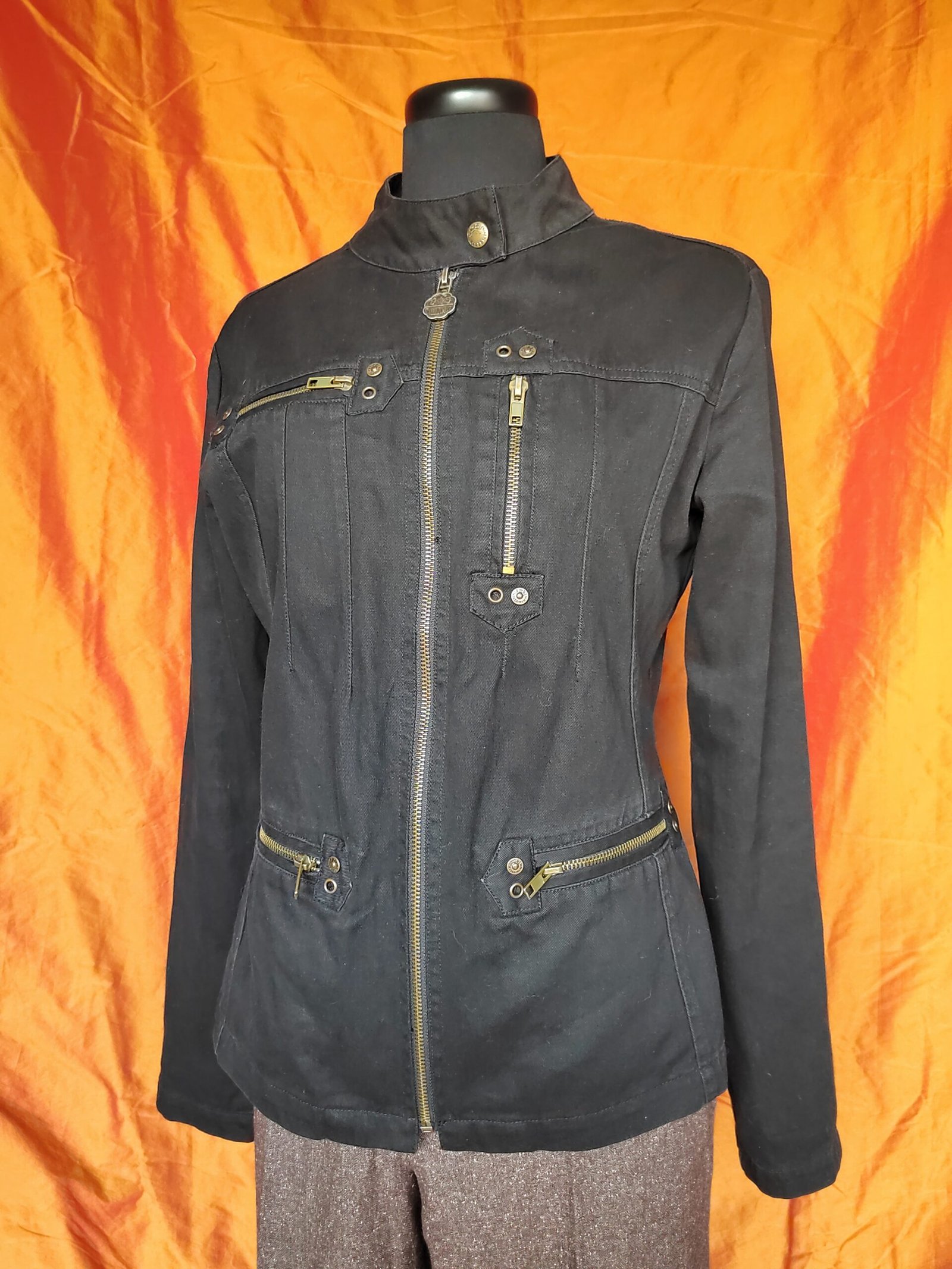 - Zip à l'avant et col boutonné.
