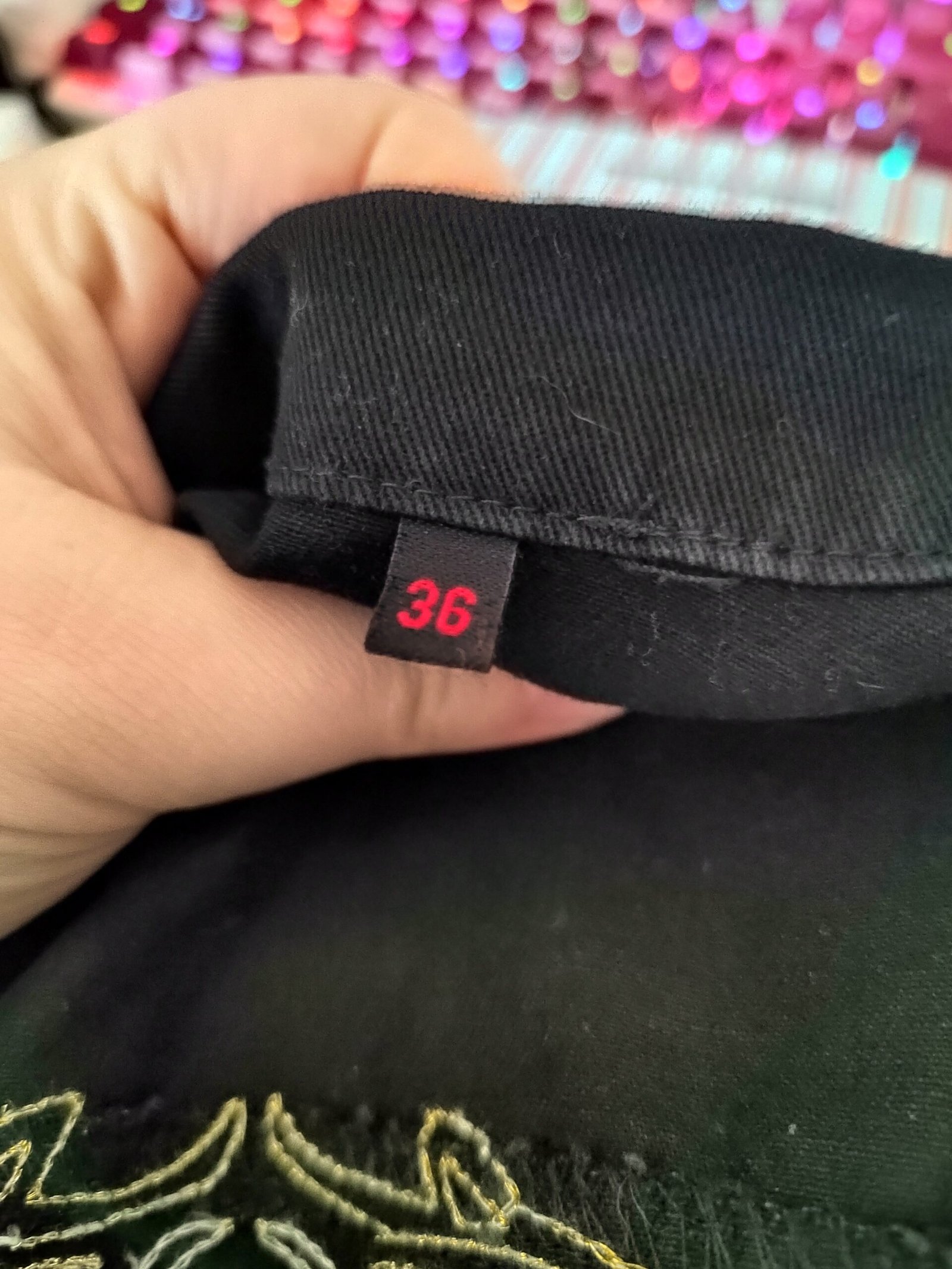 - Broderie tribale dorée à l'arrière.